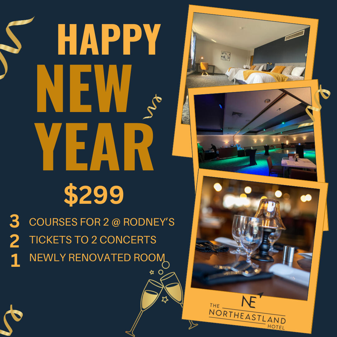 Say goodbye to 2025 in style with an unforgettable evening at The Northeastland Hotel. Our exclusive New Year's Eve package combines luxury accommodations, fine dining, live entertainment, and festive celebration—all in one spectacular night.